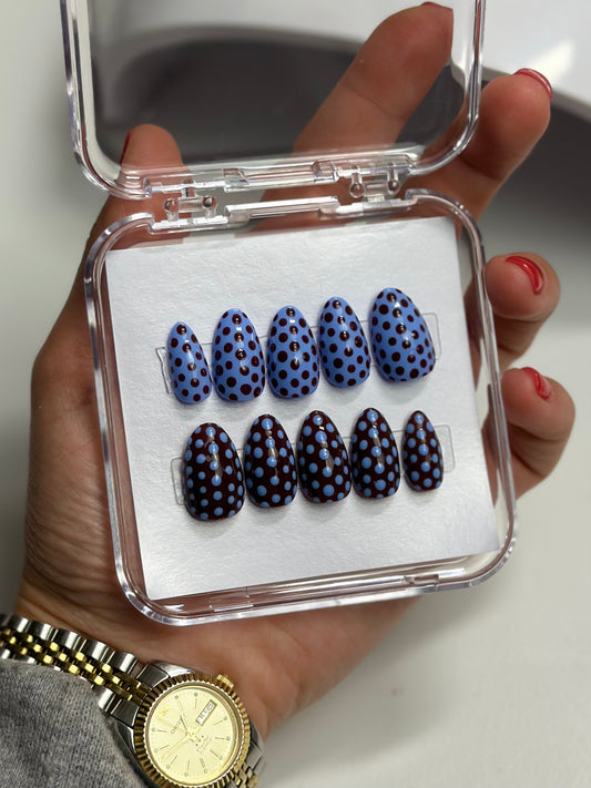 Blue and Brown Polka Dot Set